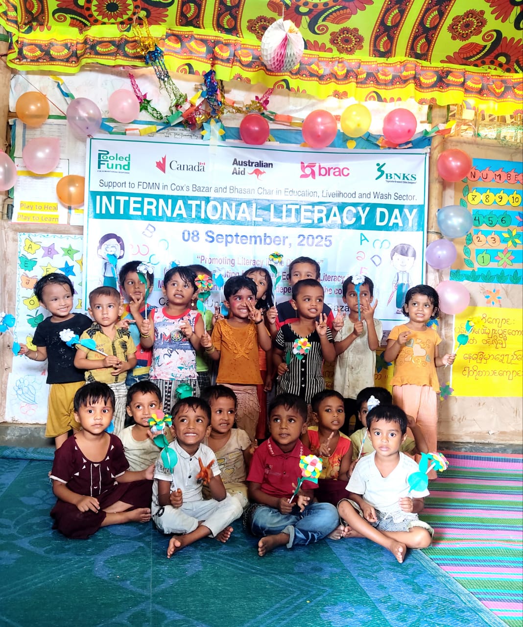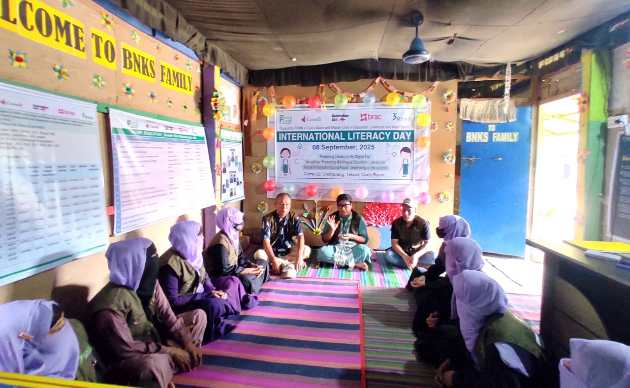 উল্লেখ্য,কক্সবাজার জেলাস্থ টেকনাফ উপজেলা এর ক্যাম্প-২২ এ বলিপাড়া নারী কল্যাণ সমিতি (বিএনকেএস) এর বাস্তবায়নে উন্নয়ন সহযোগী সংস্থা গ্লোবাল এফেয়ারর্স কানাডা (গাক) ও ডিপার্টমেন্ট অব ফরেন এফেয়ারর্স এন্ড ট্রেড (ডিএফএটি) অর্থায়ন এবং উন্নয়ন সহযোগী ব্র্যাক-পুল্ড ফান্ড এর সহযোগিতায় “সার্পোট টু এফডিএমএন ইন কক্সবাজার এন্ড ভাসানচড় ইন এ্যডুকেশন,লাইভলিহুড এন্ড ওয়াশ সেক্টর” ব্র্যাক পুল্ড ফান্ড এ্যডুকেশন প্রকল্পের পুরো টিম এর তত্বাবধানে দিবসটিকে ঘিরে আলোচনা সভা এবং শিশুদের নিয়ে বহুমুখী নানা আনুষ্ঠানিকতার মধ্যে দিয়ে “স্বাক্ষরতা দিবস-২০২৫” উদযাপন করা হয়।প্রসঙ্গত,স্বাক্ষরতা দিবস (International Literacy Day) প্রতি বছর ৮ই সেপ্টেম্বর বিশ্বব্যাপী এই দিবসটি পালন করা হয়।