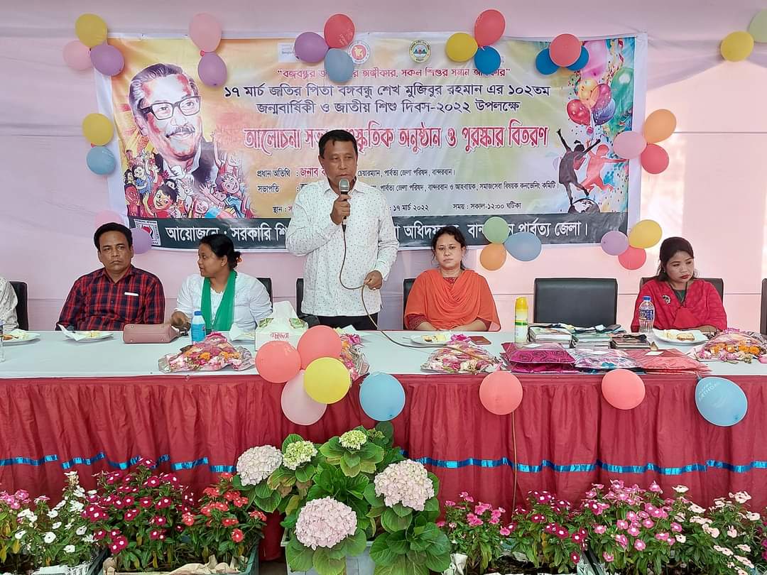 জাতির পিতা শেখ মুজিবুর রহমান।শুধু একটি নাম নয়,একটি দেশের ইতিহাস লুকিয়ে রয়েছে এই একটি নামেই।মানুষকে ভালোবেসে তিনি হয়েছিলেন ‘বঙ্গবন্ধু’।শত বছর শোষণ আর নিপীড়নের বেড়াজালে আবদ্ধ একটি জাতিকে মুক্তির দিশা দেখিয়ে এনে দিয়েছিলেন স্বাধীনতা।তাই তিনি জাতির পিতা।আজ ১৭ মার্চ বৃহস্পতিবার জাতির পিতার জন্মবার্ষিকীর সেই মাহেন্দ্রক্ষণে সারা বিশ্বের কোটি কোটি বাঙ্গালি আনন্দের বর্নিল উৎসবে মেতে উঠেছে।জাতির পিতার জন্মবার্ষিকীর এই মাহেন্দ্রক্ষণে বান্দরবান পার্বত্য জেলা পরিষদের পৃষ্ঠপোষকতায় জেলা সমাজসেবা অধিদপ্তরের আওতাভুক্ত সরকারি শিশু পরিবারে অধ্যয়নরত শিশু শিক্ষার্থীদের নিয়ে জাতির পিতা শেখ মুজিবুর রহমানের ১০২তম জন্মবার্ষিকী উপলক্ষে আলোচনা সভা,সাংস্কৃতিক অনুষ্ঠান ও পুরস্কার বিতরণ অনুষ্ঠিত হয়েছে।বৃহস্পতিবার (১৭ মার্চ) বঙ্গবন্ধুর জন্মদিনের অঙ্গীকার,সকল শিশুর সমান অধিকার এই প্রতিপাদ্য নিয়ে বান্দরবান পার্বত্য জেলা পরিষদ সদস্য ও সমাজসেবা বিষয়ক কনভেনিং কমিটির আহবায়ক তিং তিং ম্যা এর সভাপতিত্বে আয়োজিত অনুষ্ঠানে প্রধান অতিথি হিসেবে উপস্থিত ছিলেন জেলা পরিষদ সদস্য ক্য সা প্রু মার্মা।