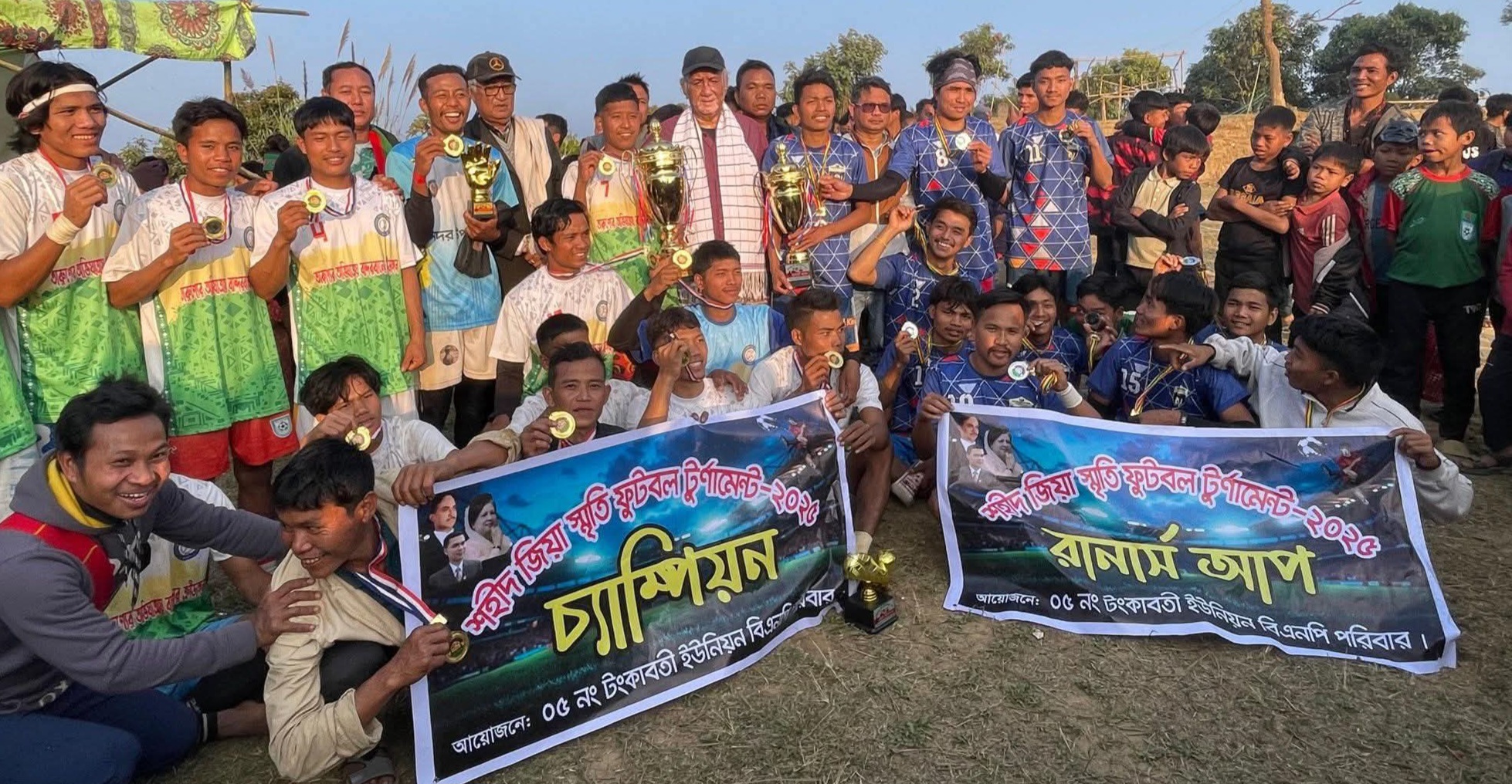 বান্দরবানের পাহাড়ি জনপদে ম্রো তরুণদের খেলাধুলায় উৎসাহিত করতে চিম্বুক পাহাড়ে অনুষ্ঠিত হয়েছে শহীদ প্রেসিডেন্ট জিয়াউর রহমান স্মৃতি ফুটবল টুর্নামেন্টের ফাইনাল খেলা।শনিবার (৪ জানুয়ারি) সদর উপজেলাস্থ দুর্গম টংকাবতি ইউনিয়নে ম্রো সম্প্রদায়ের উদ্যোগে বিএনপি পরিবারের ব্যানারে চিম্বুক পাহাড় এলাকার এম্পু পাড়া স্কুল মাঠে পাহাড়ি পরিবেশে জমে ওঠে টুর্নামেন্টের ফাইনাল ম্যাচ।এই টুর্নামেন্টের ফাইনাল খেলায় চ্যাম্পিয়ন হয় চিম্বুক পাড়া যুব উন্নয়ন সমিতি।খেলার শুরুতেই সাবেক প্রধানমন্ত্রী ও বিএনপির চেয়ারপার্সন প্রয়াত বেগম খালেদা জিয়ার স্মরণে এক মিনিট নিরবতা পালন করা হয়।অনুষ্ঠানে প্রধান অতিথি হিসেবে উপস্থিত ছিলেন সাবেক এমপি ও বান্দরবান জেলা বিএনপির আহ্বায়ক রাজপুত্র সাচিং প্রু জেরী।