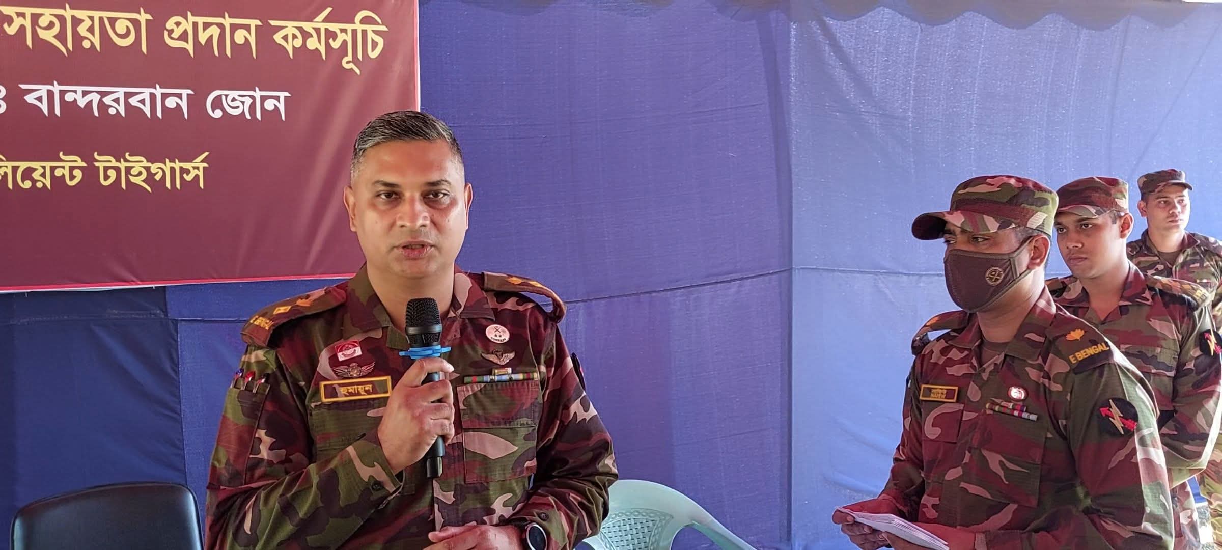 বড়দিন উপলক্ষে পার্বত্য অঞ্চলের বিভিন্ন সম্প্রদায়ের সঙ্গে উৎসবের আনন্দ ভাগাভাগি করার প্রয়াসে বান্দরবান সেনা জোনের উদ্যোগে ২য় ধাপের মানবিক সহায়তা প্রদান কর্মসূচি অনুষ্ঠিত হয়েছে।রবিবার (২১ ডিসেম্বর) দুপুরে বান্দরবান সেনা জোন প্রশিক্ষণ মাঠে অনুষ্ঠানে আগত খৃষ্টান ধর্মালম্বী জনসাধারন ও গীর্জা এবং ক্লাব প্রতিনিধির মাঝে নগদ আর্থিক সহায়তা হস্তান্তর করা হয়।