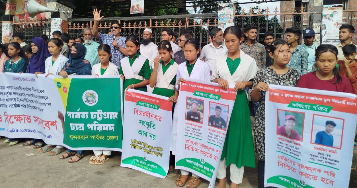 - রুমায় ধর্ষনের প্রতিবাদে মানববন্ধন ও বিক্ষোভ সমাবেশ করলো পার্বত্য চট্টগ্রাম ছাত্র পরিষদ