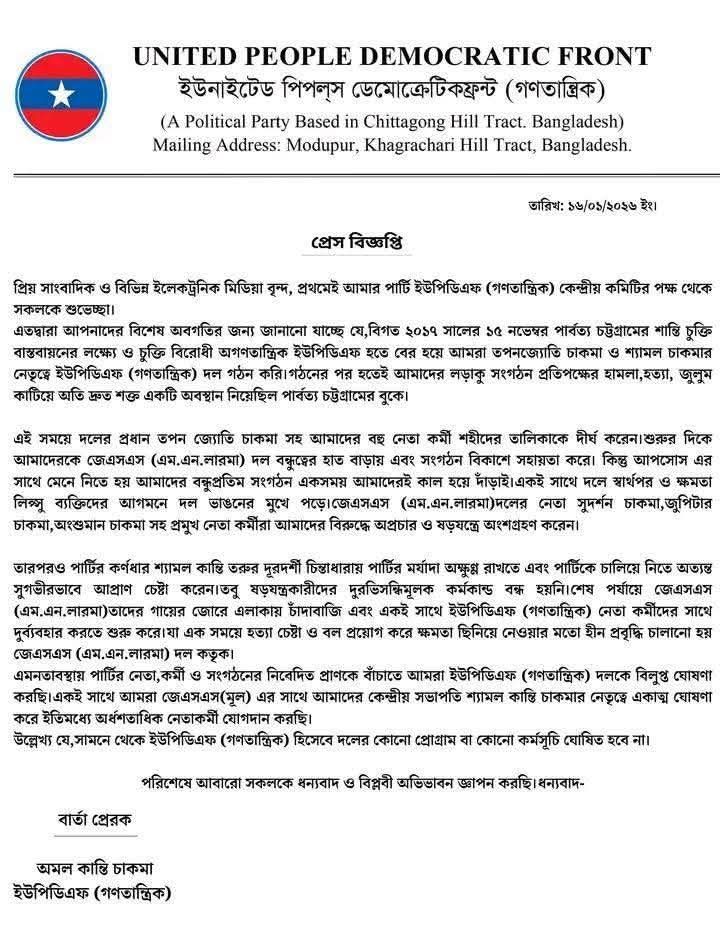 - ইউনাইটেড পিপলস ডেমোক্রেটিক ফ্রন্ট (গণতান্ত্রিক) বিলুপ্ত ঘোষণা
